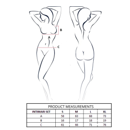 Politique retours (à modifier dans le module "Réassurance")Das INTIMARI -Set ist eine moderne Interpretation von Damenunterwäsche in einer luxuriösen Ausführung. Der offene BH ist aus zarter Spitze mit einem filigranen Blattmotiv gefertigt, das die Brust betont und dem Design einen unverwechselbaren Charakter verleiht. Die dünnen, verstellbaren Träger sorgen für Komfort und perfekten Sitz, während ein dezentes, juwelenartiges Detail zwischen den Cups für einen eleganten letzten Schliff sorgt.