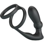This cock ring with butt plug is a combined cock/ball ring with a securely attached vibro-butt plug. The combined rings hold the penis and testicles securely and can support the erection effectively because of the blood congestion effect. The inserted vibro-butt plug with its special ball design and 12 different vibration and double sided thumping modes can provide intense backdoor stimulation. It is covered in silicone that has a soft touch texture which feels great against the skin. Makes the penis strong and pleasures his backdoor at the same time! It can be recharged with the included USB cable.