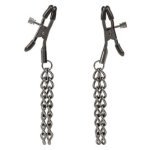 I cuscinetti morbidi offrono un abbraccio delicato, espandendo il regno del gioco sensoriale. Le doppie catene cadono con grazia da ogni morsetto, amplificando le sensazioni a ogni movimento. Realizzati con accenti metallici senza nichel, assicurano una seduzione spensierata.
